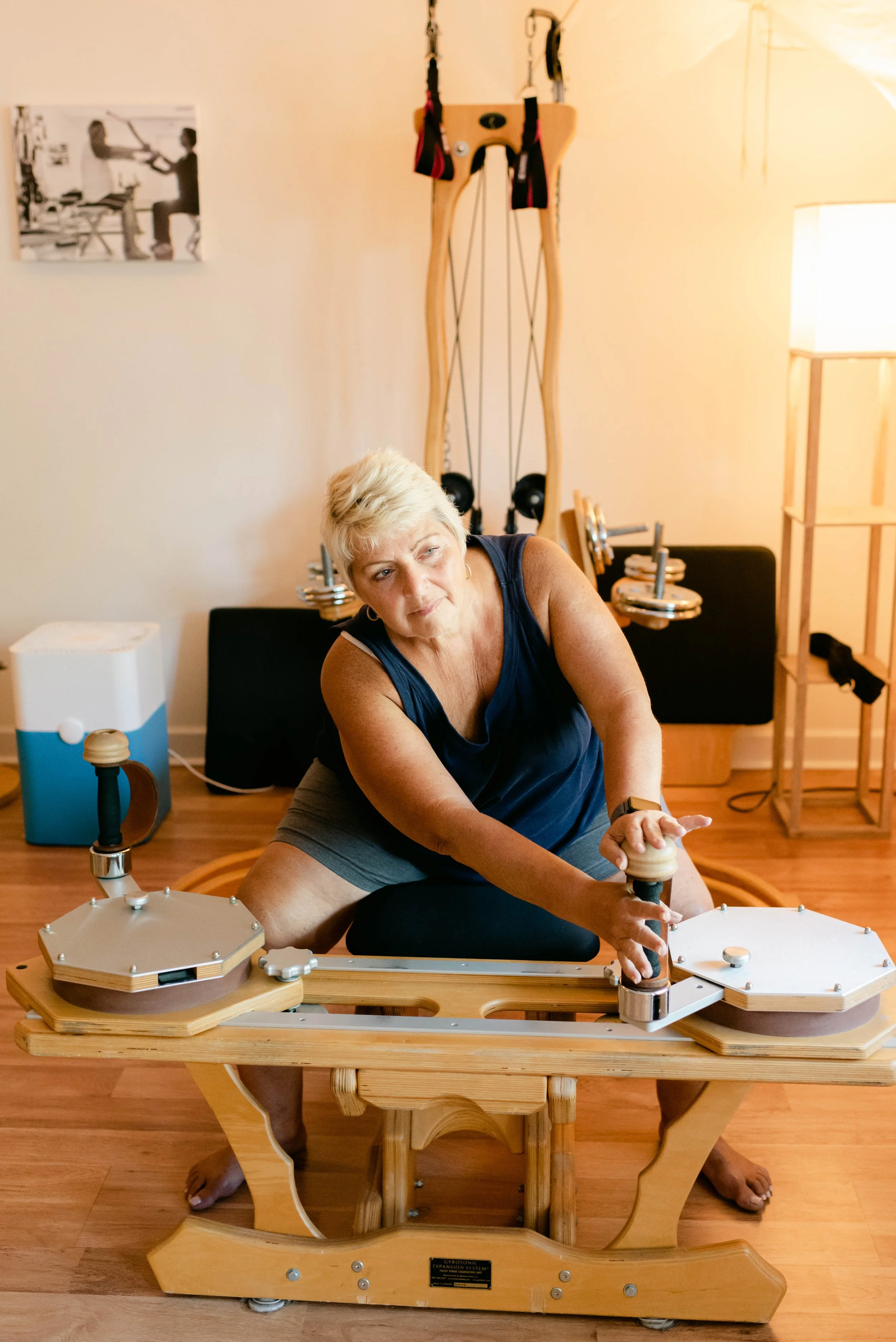 The spring tension system in the pilates apparatus and the weighted pulley tower combination unit in GYROTONIC® method means our strength training programs are HIGHLY adaptable to each individual's needs and ensures functional total body conditioning.